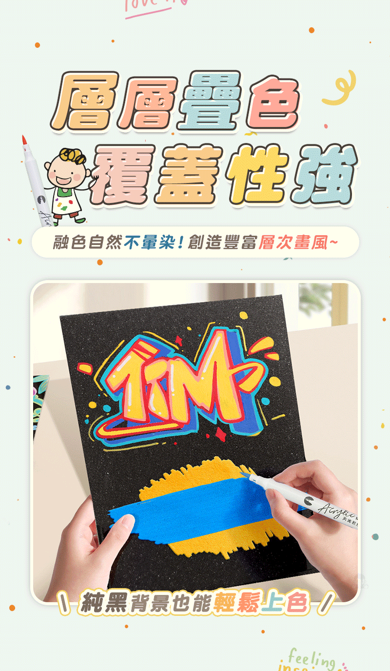 半小時前丙烯彩繪馬克筆 超強覆蓋力,萬物材質皆可畫,專為兒童研發,輕鬆擦拭不卡色 - 【一套】丙烯彩繪馬克筆 (48色)NT$580