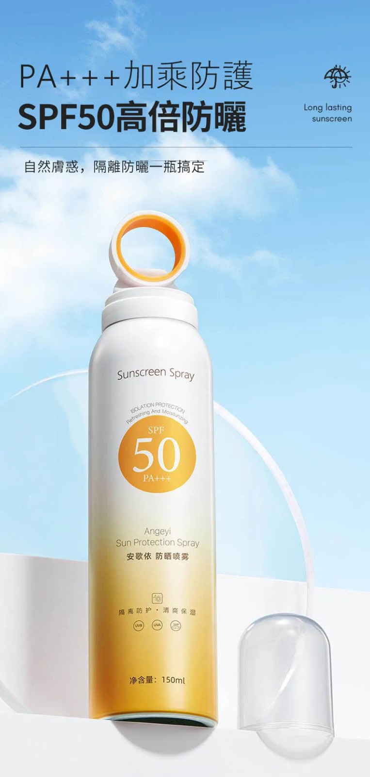 半小時前安歌依光圈防曬噴霧,細密噴頭設計 噴頭360°可旋轉自然膚惑,隔離防曬一瓶搞定 - 特大優惠「安歌依光圈防曬噴霧」4入96%用戶的選擇!NT$1198【限時免運】
