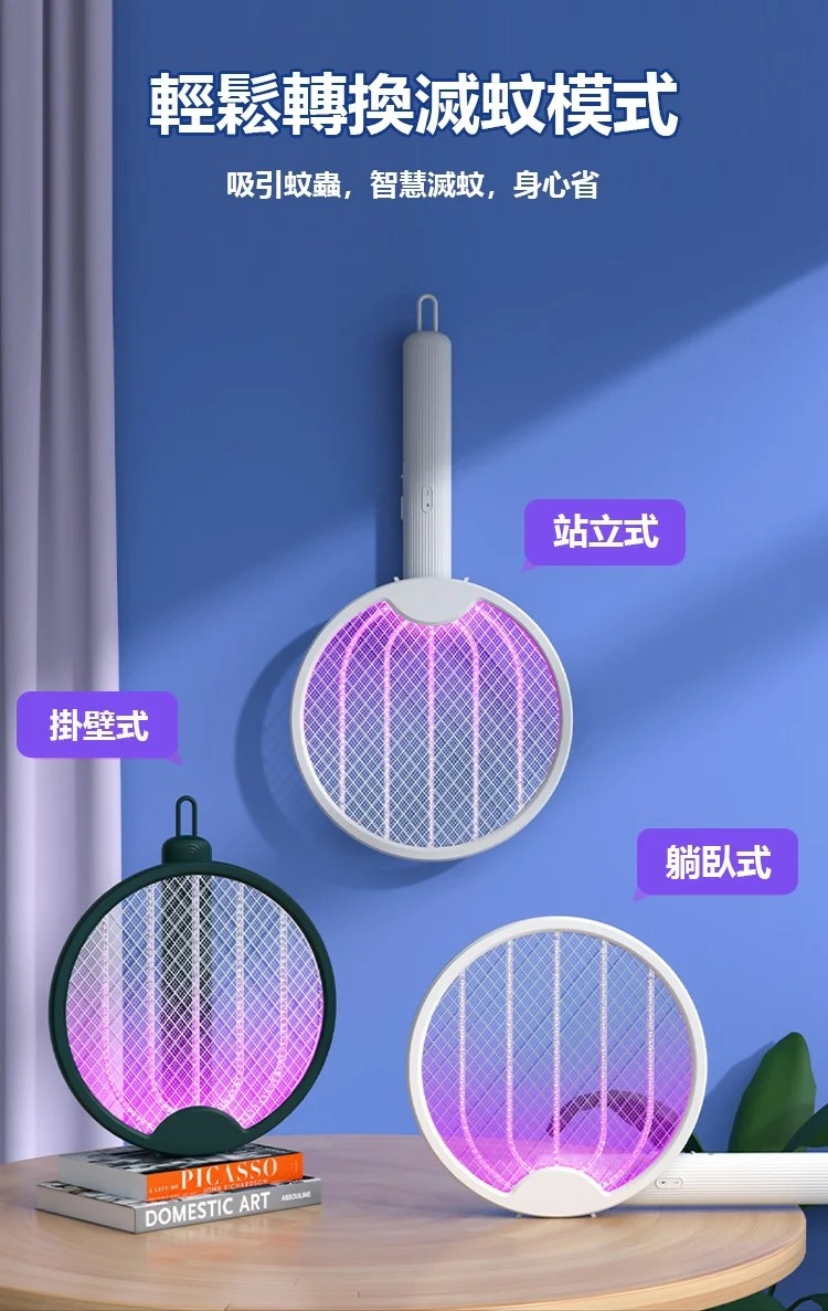 25分鐘前熱賣 四合一多功能電蚊滅蚊拍,立式/壁挂/手持式/可摺叠,雙效自動滅蚊! - 【今日限定】3入組-NT$1490